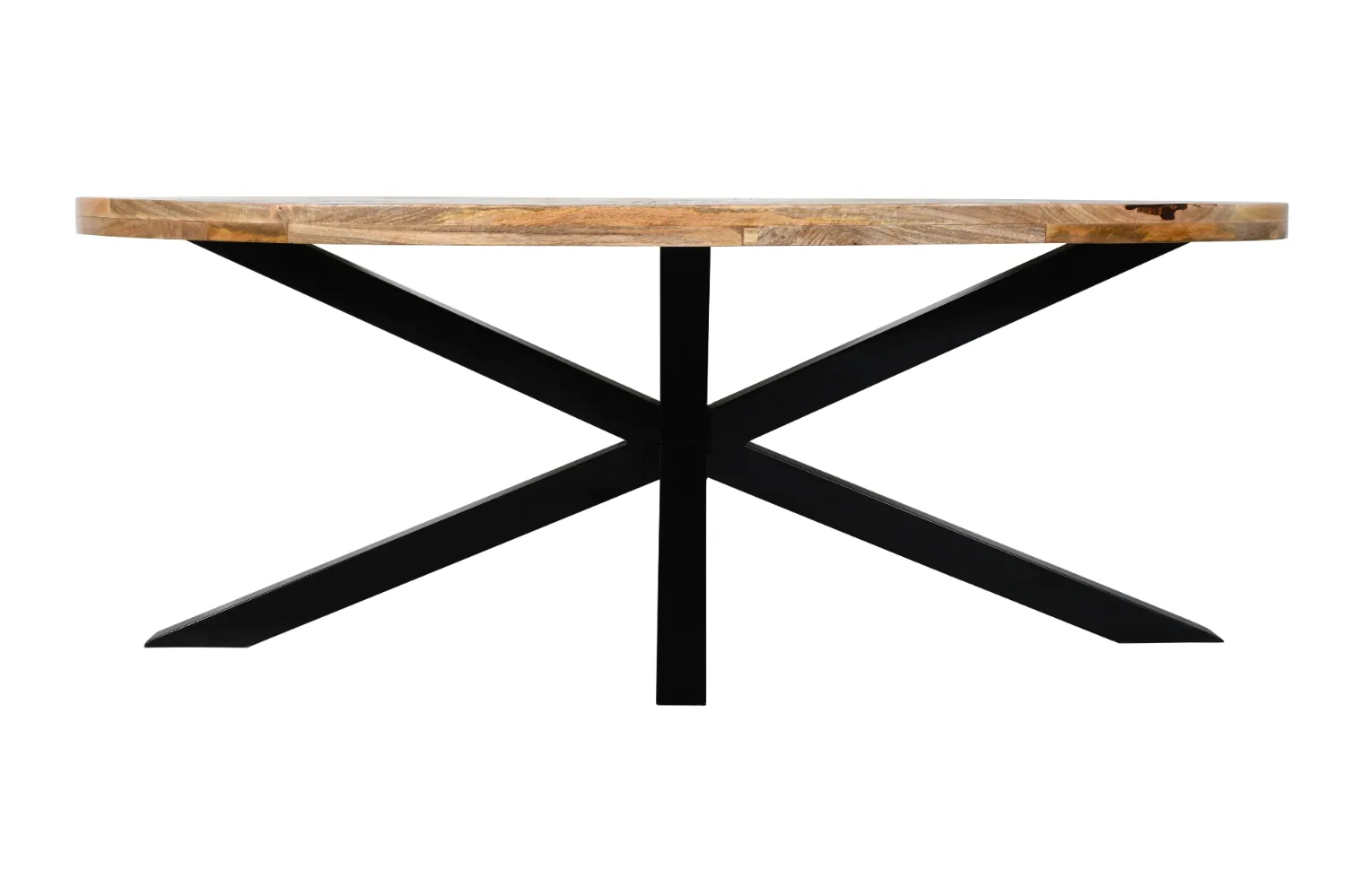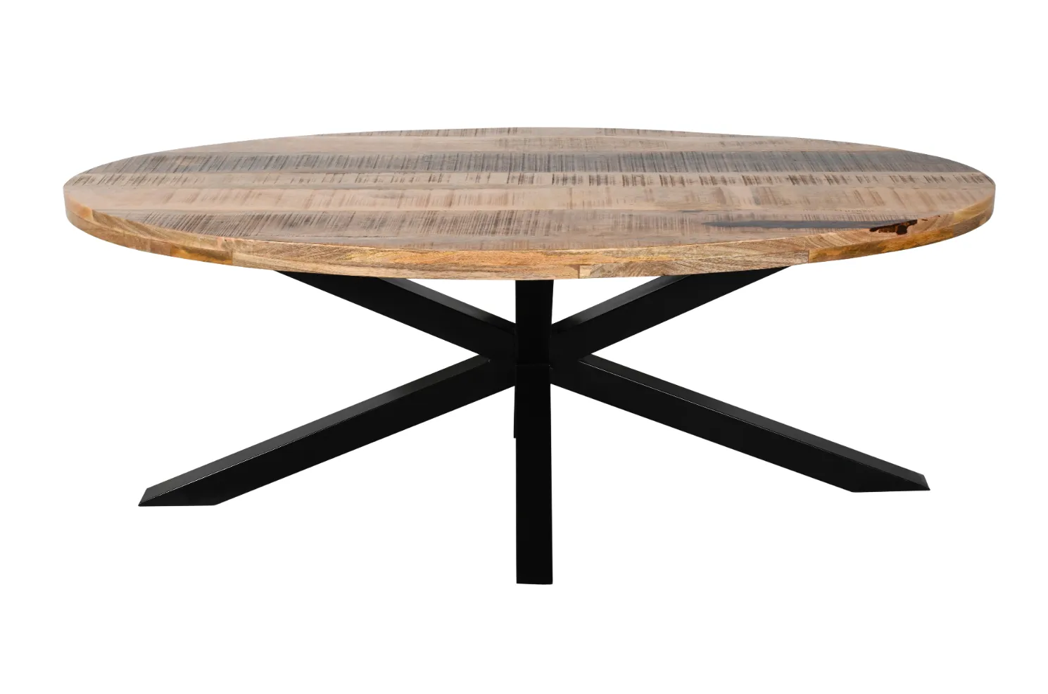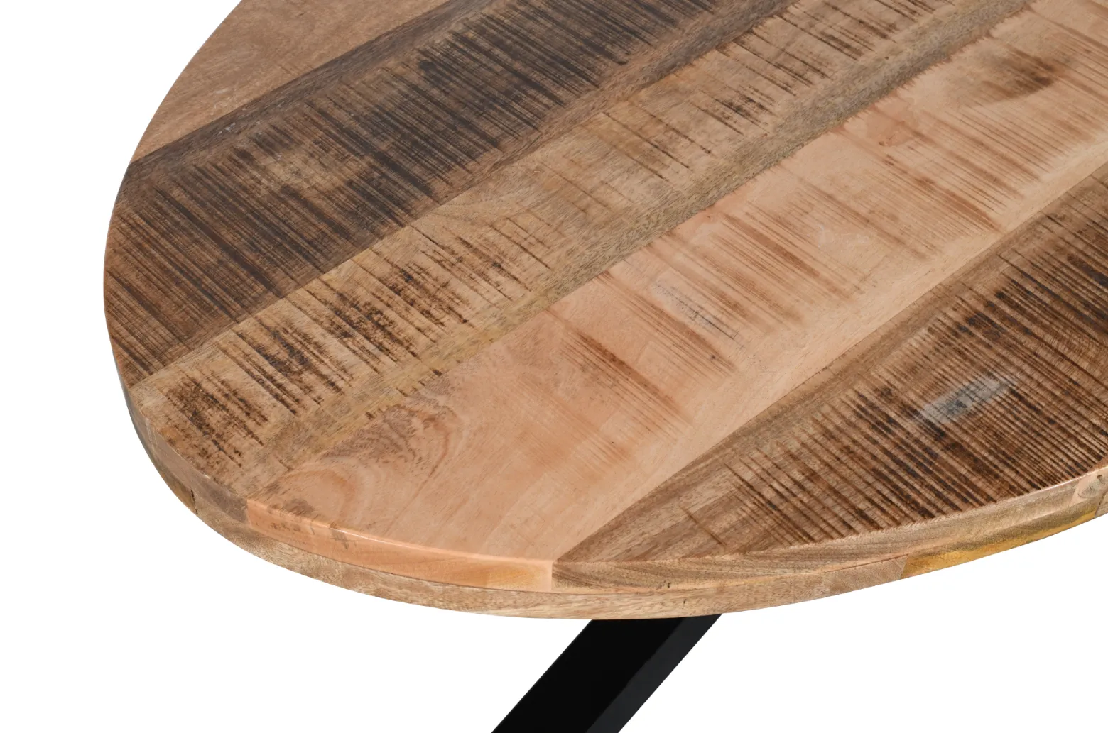Industrial Mango Wood Oval Shape Dining Table with Iron Base
