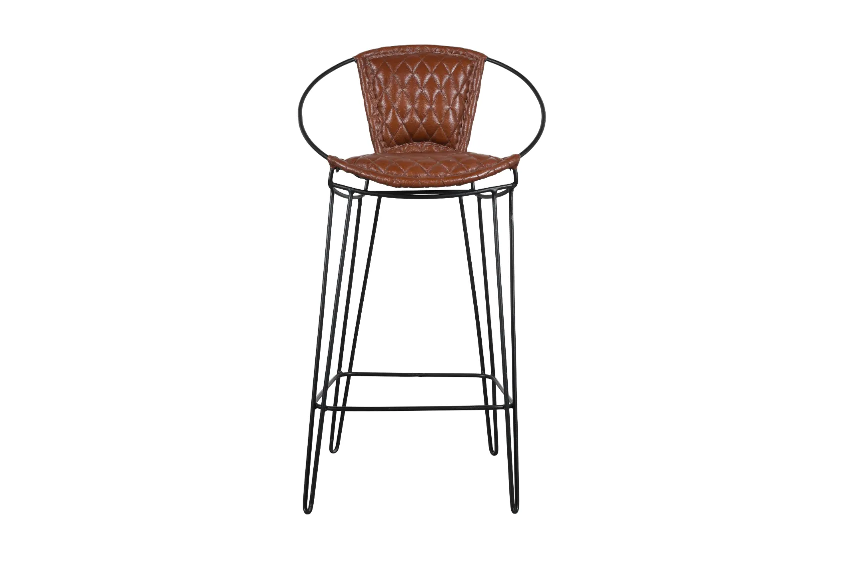 Premium Iron Wire Bar Chair with Cognac Brown Leather and Curved Back Design